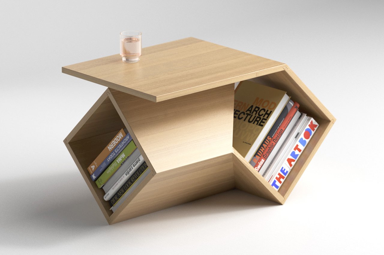 Deniz Aktay’s ‘Overlap’ table is a versatile and functional piece of furniture designed for modern living spaces. It features two rotated wooden boxes ingeniously joined to create a sturdy tabletop and storage unit. This compact yet stylish design prioritizes both form and function, offering ample storage while occupying minimal space. Its geometrically intriguing form adds a touch of sophistication to any room, making it a perfect fit for small corners or as a centerpiece in a living room.